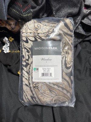 A: Hello customer, thanks for getting in touch. The black window valance has solid faux silk piecing and flat piping accents that give it a more sheeny appearance. It also boasts a Paisley jacquard pattern in silver, taupe, and beige tones that is delicately finished with a scalloped bottom design and ornate gold bead trim. Hope this helps let us know if you have further questions.