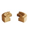 - Unique Design: The curved sofa's distinctive shape creates a cozy ambiance, featuring beautifully detailed curved armrests and soft Corduroy fabric for an elegant look. Comes with 4 pillows for comfortable back support.