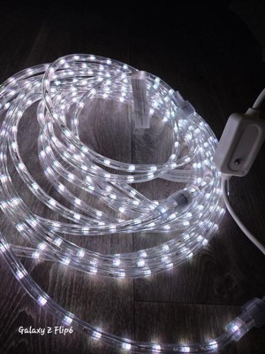 [This review was collected as part of a promotion.] Warm and inviting, elegant and clean - can a single rope light color really offer all of that? Our warm white lights can! Outlining walkways, landscaping and borders with our flexible rope light tubes, or add vibrance to decks, porches, patios and more. Concave LEDs offer increased brightness and a 120 degree viewing angle, illuminating the rope light from end to end. And LED rope light saves on energy, always remains cool to the touch, and lasts longer. 150' strand of warm white LED 120 volt rope light Includes 3 end caps, 3 splice connectors, 4 power cords, 9 splice pins, mounting clips, sealant -- enough accessories for four independent light runs Note: rope light spools can be cut, but cutting voids its certification because the rope light has been modified from its original manufacturing specifications IP65 rated for superior moisture and dust protection