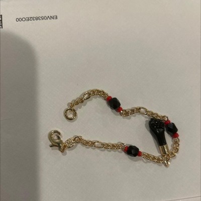 RMZ GOLD NYC 18K Gold Evil Eye Azabache Black Hand Figa Protection Good Luck Charm Bracelet Kabbalah Baby Kid Women 6''