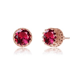 18K Rose Gold Plated Ruby Round Stud Earrings with Brilliant Cut Stones and Secure Butterfly Backs