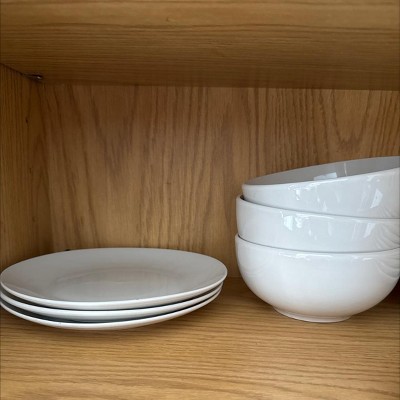 18pc Porcelain Luna Dinnerware Set White - Elama: Service for 6, Microwave & Dishwasher Safe, Includes Plates & Bowls
