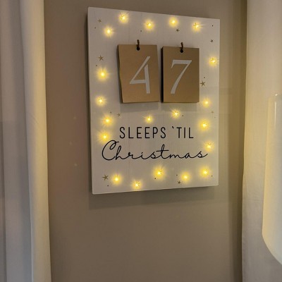 18.7" Lit 'Sleeps 'til Christmas' Wood Countdown Sign Cream - Wondershop™