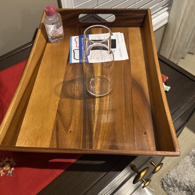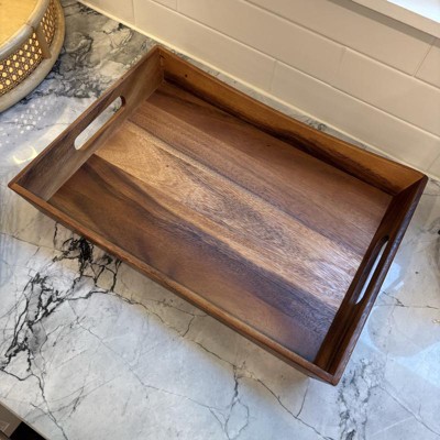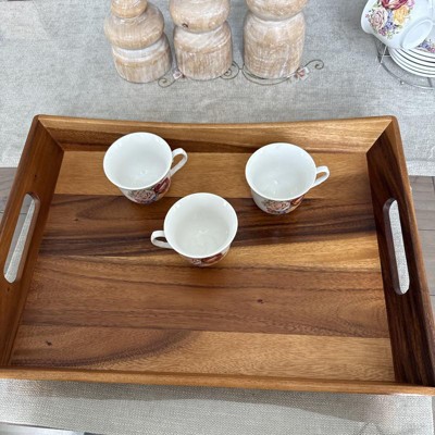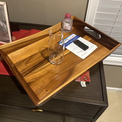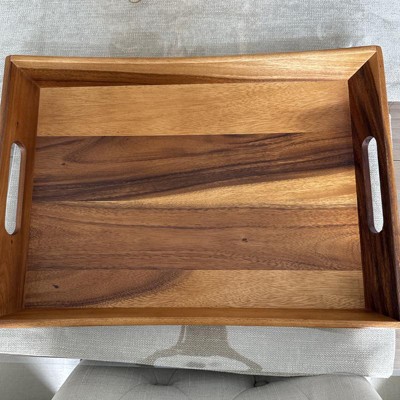 [This review was collected as part of a promotion.] The Acacia Tray is such a great buy! It is a really good size, can fit food and plates or a whole tea set easily! It is so well made and has good size handles to hold quiet a bit. The thickness makes the tray sturdy. You can use this a decore or for a large crowd of guests! I've been looking for one of these for a while now and this one is a great pick. It will last years and worth the price! I received an incentive to write this review.