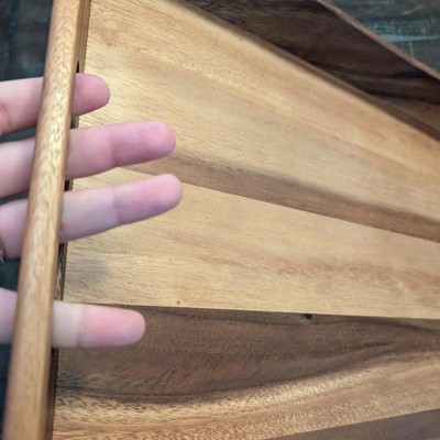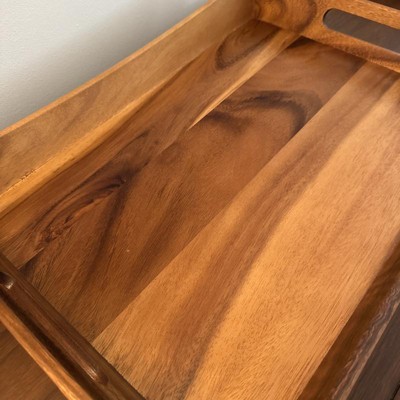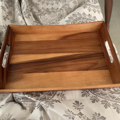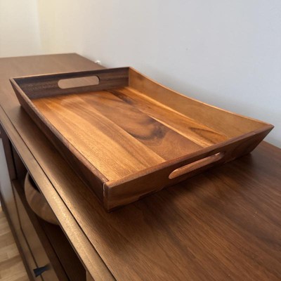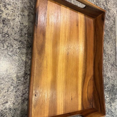 [This review was collected as part of a promotion.] This is such a nice serving tray! The acacia wood is beautiful and I love the pattern of it. It feels unique and very nice to display when not being used. It is lightweight but sturdy and the curve detail adds nice character to the product. A great value for the price. It is a versatile piece that can be used for display or functionally to bring food and drinks to the table or breakfast in bed! I received an incentive to write this review.