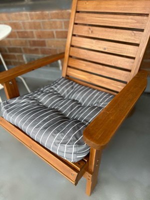 [This review was collected as part of a promotion.] The Patio Seat Cushion, 2 Pack, Navy Sedona, Stripe, 19"W looks great on my two patio chairs. Makes my patio chairs very comfortable to sit on and also very stylish. Very well made and high quality fabric and stitching. I really love my new cushions. Definitely recommend!