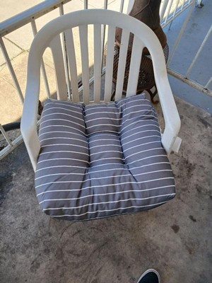 [This review was collected as part of a promotion.] These cushions are so comfortable and pillowy soft! Their large size -19"x19" makes them absolutely perfect for over-sized outdoor chairs. The Navy Stripe design is especially attractive and the grommets and tufts add a touch of elegance - these cushions would look right at home on a cruise ship or fancy resort. They are made with a tough polyester fabric that resists water and stains - protecting the cushion all Summer long!