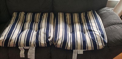[This review was collected as part of a promotion.] These Cushions are so cute. Love the pattern of cream and navy. They are soft and cushy to sit on. They work perfectly on my porch chairs. Love that it is definitely a cream color and not a white. Overall I wouldn’t change a thing.