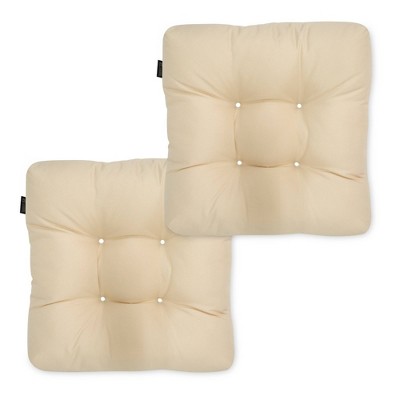 19"x19" 2pc Outdoor Seat Cushion Set Soft Beige Stripe - Classic Accessories: Water-Resistant, Tufted, Polyester Fiber Fill