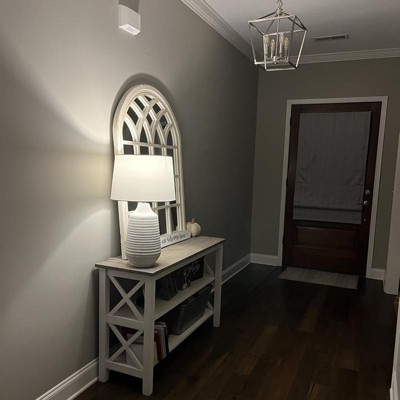 This is a beautiful lamp! Well made and looks so expensive but so affordable! I just love target lighting! I bought in store because they break so easily with the bad packaging Target does for any breakable item! Seriously need to look in to those that pack these it’s done so bad with no support! So def buy in store! The black was also nice but the white just looks so good in my dimly lit living room since I don’t get a lot of natural window light. The lamp shade looks tilted but I fixed it after the photo lol paired it with the large off white drum shade