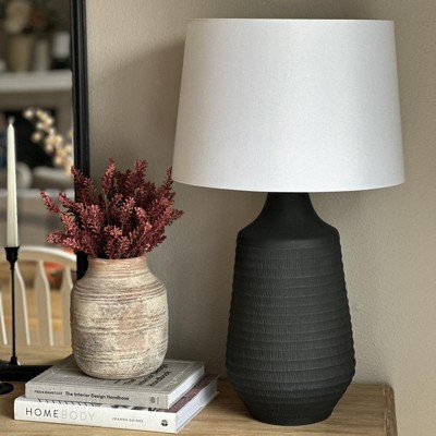 - Textured ceramic lamp base adds extra interest to your indoor lighting