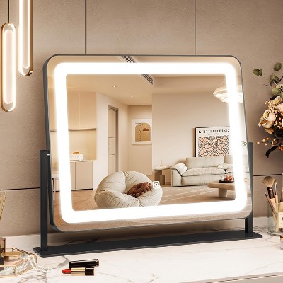"LED Vanity Mirror, Makeup Mirror ¨C TruAIR 19.6"x15.7" Black Lighted Mirror with 3-Color Modes & Touch Control for Bathroom/Bedroom"Product Details & Specifications:Professional Lighting System3 adjustable color modes (daylight/cool/warm) with dimmable brightnessShadow-free LED illumination for precise makeup applicationVersatile Positioning360¡ã horizontal rotation with weighted non-slip base19.6"L x 15.7"W anti-distortion glass for full-body reflectionPremium ConstructionDurable aluminum alloy frame for long-term useRectangular design with minimalist aestheticIntuitive Touch ControlsSmart touch panel for easy mode/brightness adjustmentsNo complicated installation requiredMulti-Scene ApplicationIdeal for bathroom vanities or bedroom tabletopsGift-ready packaging for special occasions