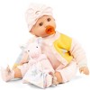 COOKIE: 19" SOFT DOLL - FABSPIEL PASTEL OUTFIT - Meet Cookie, the sweetest 19" soft doll from Gotz dressed in her Fabspiel pastel outfit! Cookie is in summer mood. She wears a finely striped jumpsuit with long sleeves, comfy fabric shoes and a really chic hat with a front knot. If it gets cold outside, the super-beautiful knitted jacket with pastel-colored flowers comes along. ENCOURAGING IMAGINATION & PLAYFUL LEARNING: If the cuddly bunny is with her, Cookies world is fine. When getting tired she sucks a little on the pacifier and falls asleep. Cookie loves cuddles, tea parties, and endless pretend play. Her soft cloth body makes her perfect for hugging, while her delicately detailed vinyl face gives her a lifelike charm. Designed for imaginative children, she’s easy to dress, pose, and carry everywhere. QUALITY MATERIALS & THOUGHTFUL DETAILS: Crafted with Gotz’s renowned European quality, Cookie encourages nurturing play that helps little ones build empathy and creativity. Whether its bedtime snuggles or daytime adventures, Cookie is always ready to be a best friend. Beautifully made to last through years of love, this charming companion makes an unforgettable gift for doll collectors and little dreamers alike! Cookie is 19'' tall and has brown sleeping eyes. SET INCLUDES: Cookie, suit, fabric shoes, headscarf, knitted jacket, pacifier, favorite cuddle toy, diaper. KEY FEATURES: Machine washable and suitable for tumble drying. Soft body with vinyl arms and legs. Suitable for children 3 years and older – due to the size and weight we recommend this doll for children from 5 years and older, due to size and weight.