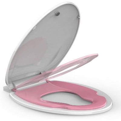19" Elongated Toilet Seat with Built in Potty Training Seat, Potty Training Toilet Seat for Toddlers,Magnetic Kids Seat and Cover, Slow Close Biscuit