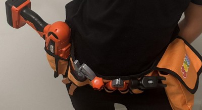 - The power drill features an auto-rotating chuck, 3 replaceable bits, allowing kids to enjoy the buzzing action of drilling and screwing. The realistic tool belt lets them dress up and pretend to be a skilled worker, combining costume play with fun.