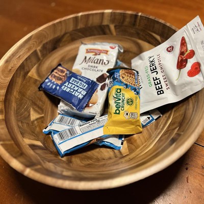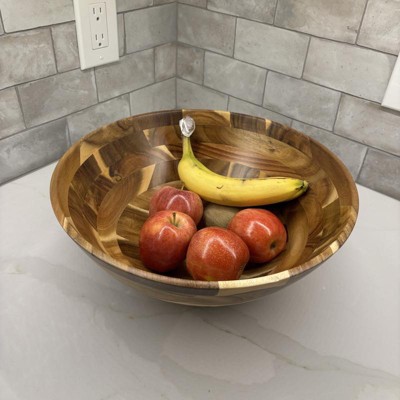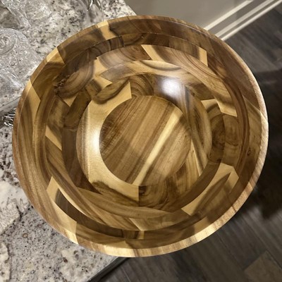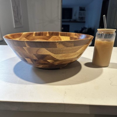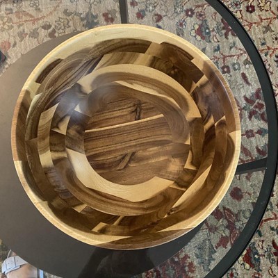 The combination of horizontal and vertical lamination creates beautiful striated patterns on these bowls. We decided to keep the natural colors intact and didn’t cover the wood with a different color finish. The patterns in the acacia wood come through in gorgeous texture and are perfect for adding visual interest to your tabletop. Perfect for serving everything from individual salads to movie-night popcorn, these beautiful wooden bowls are crafted from durable and attractive acacia wood. The timeless look of wooden serveware coordinates with nearly every decor style. Great for making a statement when hosting, or just for serving a weeknight dinner beautifully. Fun and festive, you'll find our acacia wood serveware bowls at the center of your table for years to come.
