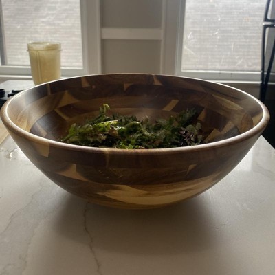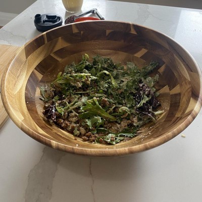 [This review was collected as part of a promotion.] This acacia footed round flared serving bowl was so much bigger than I expected, even at 196 ounces. The quality appears to be really nice, especially for a “catch all” to contain the clutter such as keys, remotes, small books. This will make a great serving dish for a party or event. I love the color and the design within. This is gonna be your favorite salad serving dish! I received an incentive to write this review.
