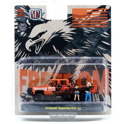 1973 Chevrolet Cheyenne Super 30 Truck with Camper Shell Blue with Stripes Limited Edition 1/64 Diecast Model Car by M2 Machines