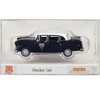 Brand new 1/87 (HO) scale plastic car model of 1974 Checker Cab Black and White "Winnipeg" plastic model car by Brekina.