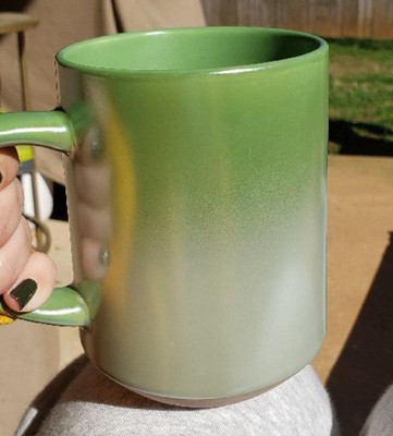 Refresh your mug collection with a splash of color with this 19-Ounce Ombre Stoneware Mug from Threshold™. This stoneware mug features an ombre finish for an appealing handmade look, and it holds 19 fluid ounces — perfect for a satisfying serving of coffee, tea, cocoa or any other drink, hot or cold. Designed with a curved handle on one side, the mug offers a comfortable grip, and it's microwave- and dishwasher-safe for easy reheating and cleanup.