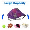 The sports ball bag is made of heavy-duty nylon-mesh material, designed with drawstring shoulder straps for relaxing hands and an inside zipper pocket for holding small valuables, 19 x 15 inches, easy to fold and carry. It has a large capacity and can store many items. The mesh design allows air to flow through the bag for easy drying, eliminating dampness and odors. The bag is excellent for beach travel, biking, sports, gym training, yoga, running, swimming, diving, dance, hiking, camping gear, teamwork, backpacking, clothes, laundry, and more.**THIS ITEM IS NOT INTENDED FOR USE BY 12 AND UNDER.**