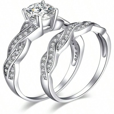 1ct Simulated Diamond Engagement Rings for Women, Sterling Silver Promise Rings, Wedding Eternity Band Set