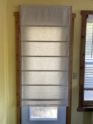 Add style to your window while filtering in natural light with this Cordless Roman Linen Blend Blind and Shade from Threshold™. This stylish roman blind brings a modern twist to your interiors. Made from a linen-blend fabric in a natural tone, it easily mixes with your existing decor. The light-filtering shade lets just the right amount of light in while enhancing privacy, while the cordless retraction mechanism makes it easy to open and close the window shade. You can install it in your bedroom, living room, kitchen or anywhere else to give your space a clean, contemporary look.