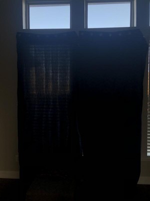 After looking for navy curtains that had some good texture for quite some time, I finally came across these. They're lovely in person! Exactly what I wanted, and actually very darkening (though that wasn't something I was trying to fine). I would definitely purchase again.