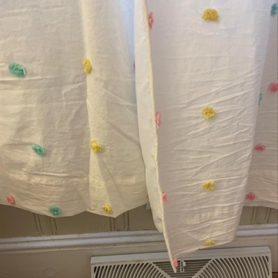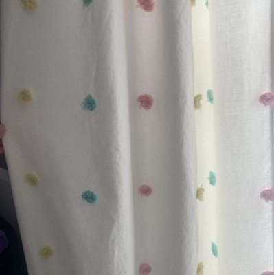 [This review was collected as part of a promotion.] I recently tried a new look in windows. Callie Cotton Jacquard Pom Pom Window Panel is adorable with just the right pastel colors of pink and blue on a white panel . Easy care and washable. Perfect for a children’s room allowing the sunlight in and yet privacy too. The quality of the material is very nice and should hold up for several washings .