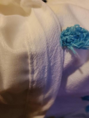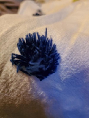 [This review was collected as part of a promotion.] Who knew Pom Poms would show up and give off Such happiness!! The Curtain Panel was adorned with cute yarn pom poms that were on securely. What I also loved was that it had a flat panel attached giving it a very fancy and expensive look! I will definitely show off my Callie Cotton Jacquard Pom Pom Window Panel but only after I purchase a couple more!!