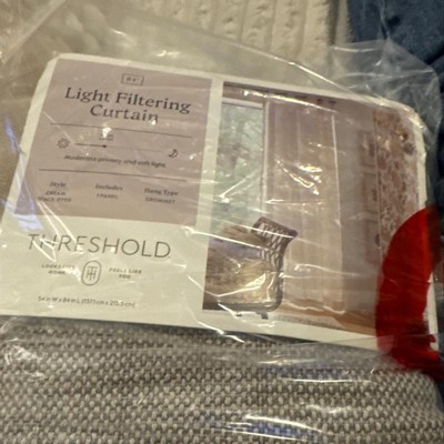 The Textured Weave Light-Filtering Curtain Panel from Threshold™ will instantly transform your space with a soft and inviting vibe. The soft fabric-blend curtain panel comes in a solid color with a textured-weave pattern that mixes easily with a variety of decors, and the light-filtering fabric lets just the right amount of light in while enhancing privacy. The curtain is machine-washable for easy upkeep, and the metal grommets make installation on any curtain rod a breeze. Whether you hang it in your living room, den or three-season porch, you'll love the crisp look this textured panel adds to your home.