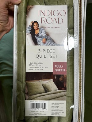Bring luxury and comfort to everyday living with the Malone Luxe Velvet Quilt Set by Indigo Road, a brand founded by renowned designer, HGTV star, and real estate broker Egypt Sherrod. Guided by her belief that your home should feel good from the inside out, this soft, rich, and timeless channel velvet quilt with embroidery detail is the perfect statement piece for a cozy, sophisticated bedroom. Set includes 1 quilt and 2 shams. To care for your quilt set, machine wash cold on gentle cycle. Use non-chlorine bleach when needed. Tumble dry on low heat. Do not iron. Machine wash cold on gentle cycle. Use non-chlorine bleach when needed. Tumble dry on low heat. Do not iron.