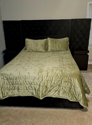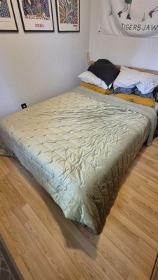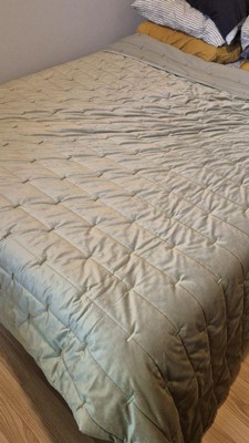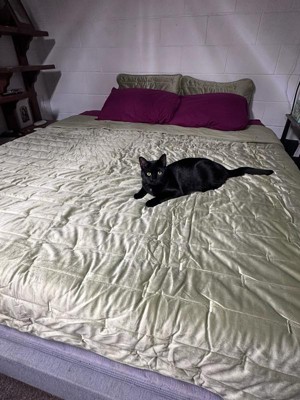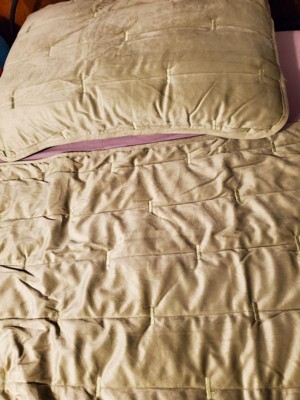 [This review was collected as part of a promotion.] This comforter set is pretty average in my opinion. The sage green color is beautiful and I love the "pinched" detail. The velvet texture also gives our room a boost of character and chic feeling. However, it is very thin and does not give our bed much volume. It does not keep us warm on its own and some of the stitching is already coming undone. I think it's nice as a throw blanket at the end of the bed... but I would not use it as a stand alone comforter. I received this product free from Influenster for my honest review.