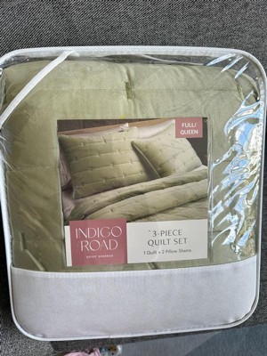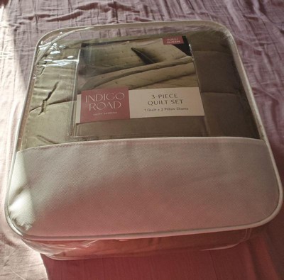 [This review was collected as part of a promotion.] I received this product for free in exchange for my honest review. I'm loving this Indigo Road quilt and sham set! The shade of green sage is beautiful and the velvet pile of the fabric feels super soft and luxurious. I love that the velvet is only one sided so It doesn't make me too hot or sweaty at night. It's warm, but not too bulky. The quality is very good. It feels durable and well made. I did notice a kind of burnt smell to the fabric when I opened the package but it was able to wash out. Overall a great product.