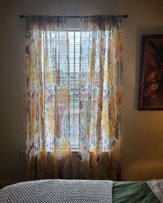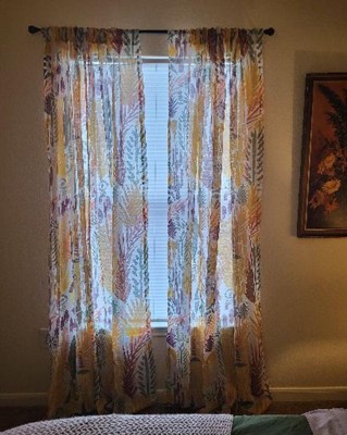 Keep the sun out during the day with this Light Filtering Curtain Panel Burnout Sheer from Opalhouse™ designed with Jungalow™. This blackout curtain panel brings decorative and functional style to your space. It showcases a colorful botanical pattern with a burnout effect for charming flair. The light filtering fabric blocks out most of the sunlight, and provides privacy at the same time. The classic rod pocket allows for quick and easy installation. Just fit in a standard curtain rod, and simply machine wash for fuss-free care.