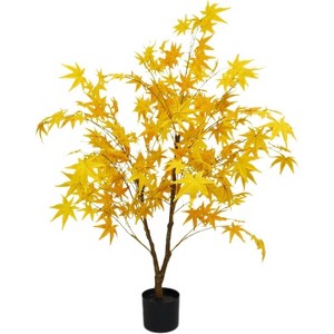 1pcs Large Artificial Red Maple Tree, Yellow Maple Tree, Bionic Potted Tree, Window Landscaping Tree, Courtyard Decoration