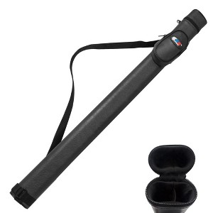 The 1x1 billiard cue case holds 1 butt and 1 shaft, designed with PU leatherette covering from bumps and scratches, an adjustable shoulder strap for easy carrying, a slid-able zipper pocket, with an oval cross section, quality and durable. The case cloth divider inside goes all the way into the case, and the soft felt-lined bottom cushions the pool cue if it drops. The pool stick case is perfect for all 2-piece cues measuring 58 inches or less.