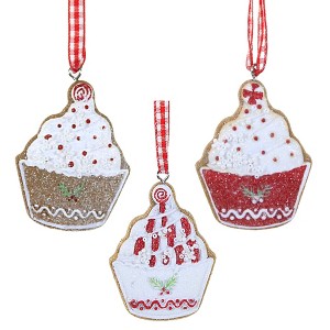 - Holiday Ornament Gingerbread Cupcake Set/3 Polyresin Sprinkles Candies G79469