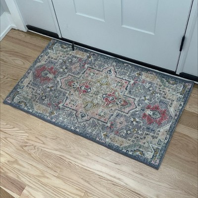 I needed a rug for a high traffic area in my kitchen that is semi-awkward. I wanted colorful but also benign enough to blend with my family room decor. Oh---and it had to be in my very super tight budget. Found this gem and L-O-V-E it!! No rug pad or tape needed either! HUGE bonus!! (Really though-can all rugs be like this??)