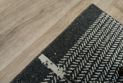 Tie together any room's decor with this Herringbone Accent Rug from Threshold™. This accent rug showcases a gray herringbone pattern on a black backdrop for an eye-catching look that coordinates well with any interior decor. Made from soft tufted fabric with a low pile height, this indoor rug is ideal for placement in high-traffic areas like your den or entryway and is easy to spot clean. The fade- and stain-resistant construction offers lasting use, and skid-resistant latex backing helps to keep it from sliding around your floor.