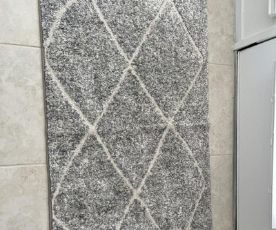 Keep your home clean with the Crisscross Easy-Care Rug from Threshold™. Featuring diamond-shaped crisscross patterning across the surface, this rectangular accent rug helps protect your floor from dirt and grime, and the medium-pile construction offers ample cushioning underfoot. While the neutral color scheme of gray and ivory blends well with most decor, the latex backing helps provide sure, secure footing. Place it in your entryway or just outside your door to help keep dirt and water from being tracked into your home, or use it in the kitchen or laundry to make your cooking or washing experience more comfortable.