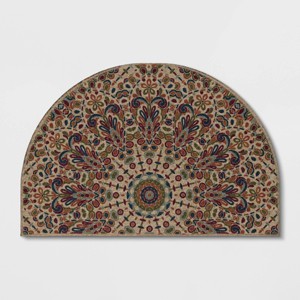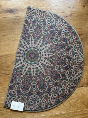 A: The doormat features a medallion print, adding an elegant touch to entryways.