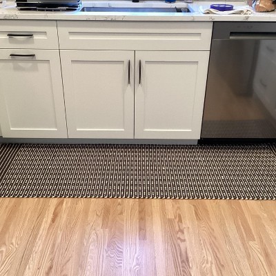 A: This rug is black and white in color.