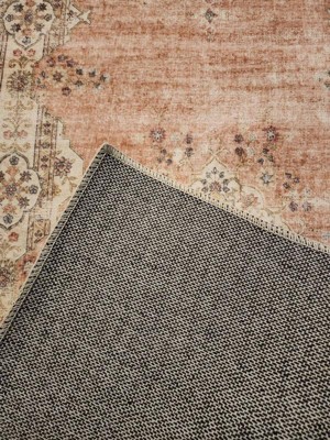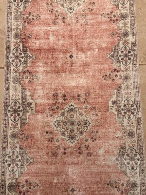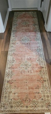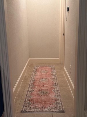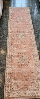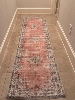 2'x8' Washable Blanton Rug Pink/Ivory - Linon: Rubber Backed, Stain-Resistant, Low Pile, Traditional Medallion Design