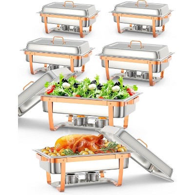 2/4/6-Piece 8QT Gold Stainless Steel Chafer Set – Rectangular Buffet Warmers with Lids & Foldable Frames for Catering, Weddings, Parties