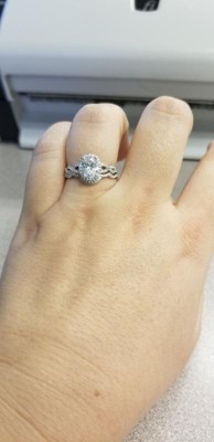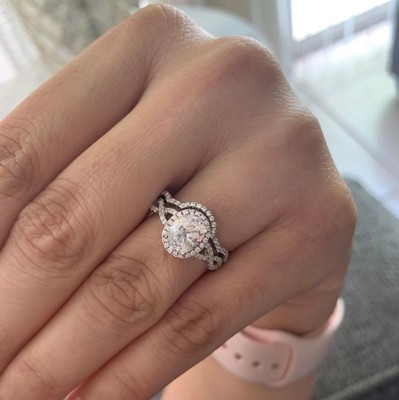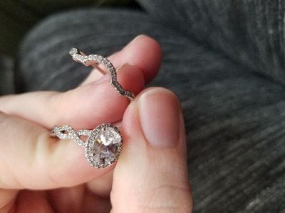 I recently lost weight and my bridal set no longer fits, I purchased this set and I love it! It's gorgeous with lots of sparkle. I love that it's physically two rings which makes it more believable as a bridal set. The main stone is a little large, but not so over the top. I asked a few close girlfriends and they agree its modest enough, I didn't want to look "Bling on the hand and then hop in my 2008 Corolla with my two kids under 6." This nails it!