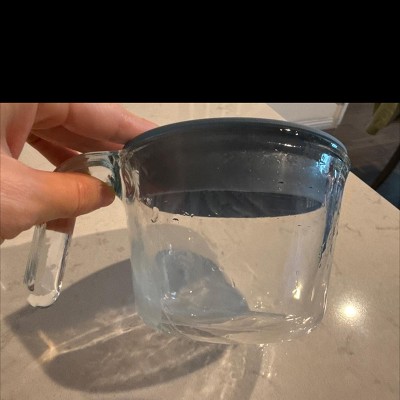 A: The measuring cup is made from borosilicate glass, known for its durability.