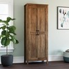 Are you running low on storage space? No more room in all your creative hideaway spaces? Well we have just the solution for you! Add versatile storage and an attractive addition to your home with this two door storage cabinet from the Sauder Select collection. Behind this storage cabinet's two large doors are three shelves for you to store anything from linens, to holiday decorations, and everyday items like cleaning supplies. You can find room for it all! This double door storage cabinet includes two adjustable shelves that feature the ability to move to different heights to create flexible storage options for items of all shapes and sizes. The charming style and simplistic design of this storage cabinet with doors make it a great addition to any room in your home – in the living room, down the hallway, in the entryway or even in your bathroom! Finished in Rural Pine™ and detailed with attractive hardware, this classic looking living room storage furniture will have you feeling organized in no time!