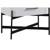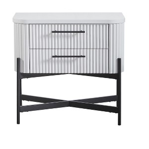 Reeded Fronts2 Storage DrawersMetal Accent BaseMetal Ball Bearing GuidesUSB Charging PortFelt Lined Top Drawer and Cedar Lined Bottom Drawer