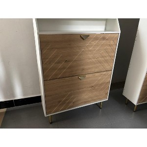 - 【Hidden Shoe Storage】This wood color shoe cabinet features a slim, freestanding design with two tilt drawers that discreetly store shoes out of sight, creating a neat entryway or hallway while maximizing space and keeping the floor clutter-free for a clean modern look.